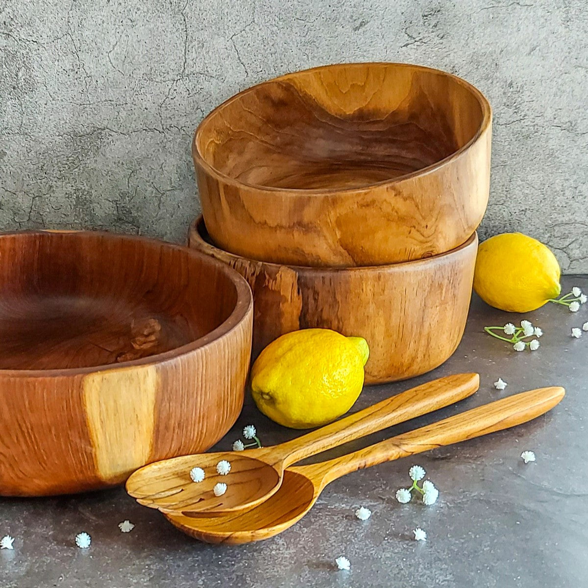 Wooden Bowls and Servers: Perfect for salads and side dishes in both casual and formal settings.