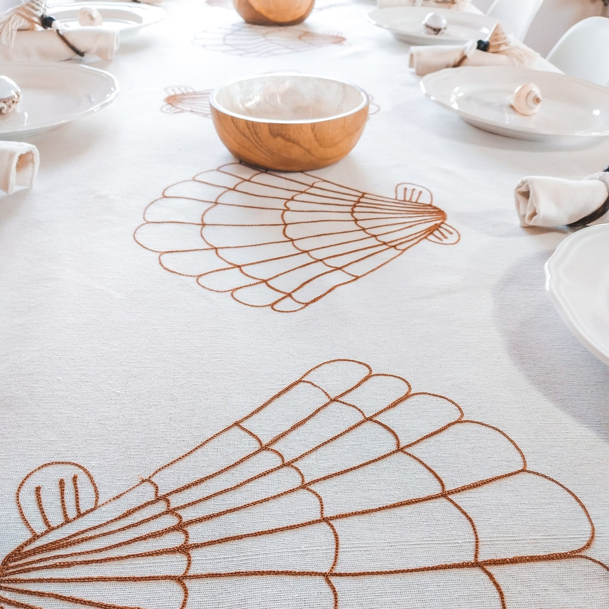 Imagine draping your table with our serene off-white tablecloth adorned with delicate shell or intricate macrame details. This combination not only exudes a sense of calm and purity but also introduces a subtle bohemian flair. The shells and macrame accents evoke the tranquil beauty of Bali's beaches, bringing an element of natural elegance to your dining room. It's perfect for creating a relaxed yet refined atmosphere that is both inviting and chic.
